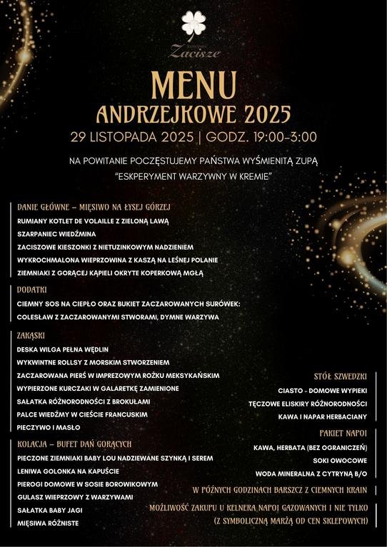 ● Bal Andrzejkowy przy DJ w sobotę w godz. 19:00-3:00 z bardzo bogatym i smacznym menu.