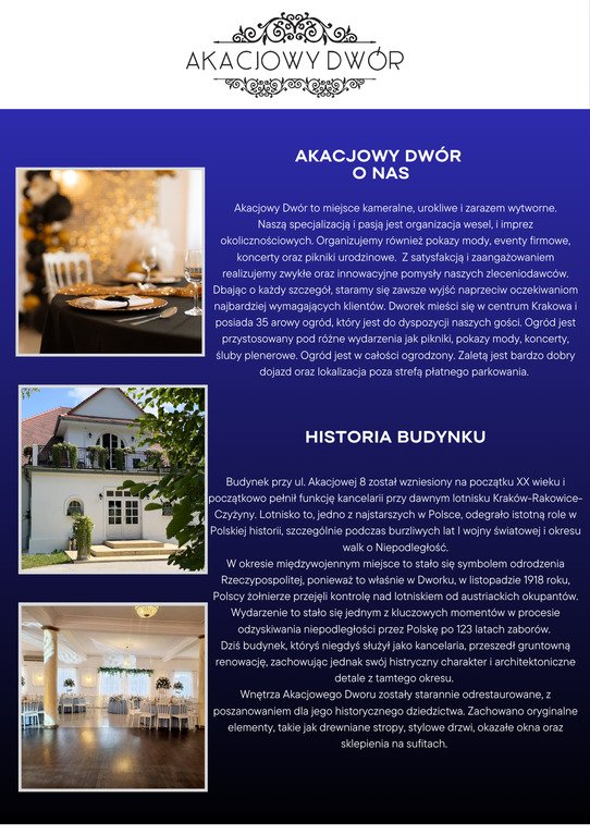 Serdecznie zapraszamy do wyjątkowego miejsca jakim jest Akacjowy dwór.