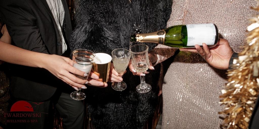Open Bar podczas zabawy sylwestrowej (wódka, whisky, wino białe i czerwone, piwo) oraz napoje bezalkoholowe: soki, napoje, woda, kawa i herbata.