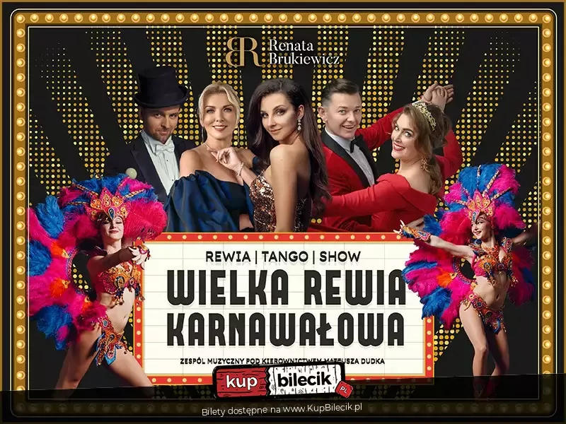 Zapraszamy na niezwykłe widowisko muzyczne, które na zawsze pozostanie w Waszej pamięci! Gala, jakiej jeszcze nie było - prawdziwa uczta dla zmysłów i duszy. Wielka Gala Karnawałowa - Rewia - Tango - Show to koncert, w którym każdy utwór to małe arcydzieło, każde show skrywa niezapomniane emocje, tango opowiada wyjątkową historię, a rewia zachwyca lekkością i tajemniczością. Tego wyjątkowego wieczoru przeniesiemy się w magiczny świat karnawałowych tradycji z najpiękniejszych zakątków globu.
