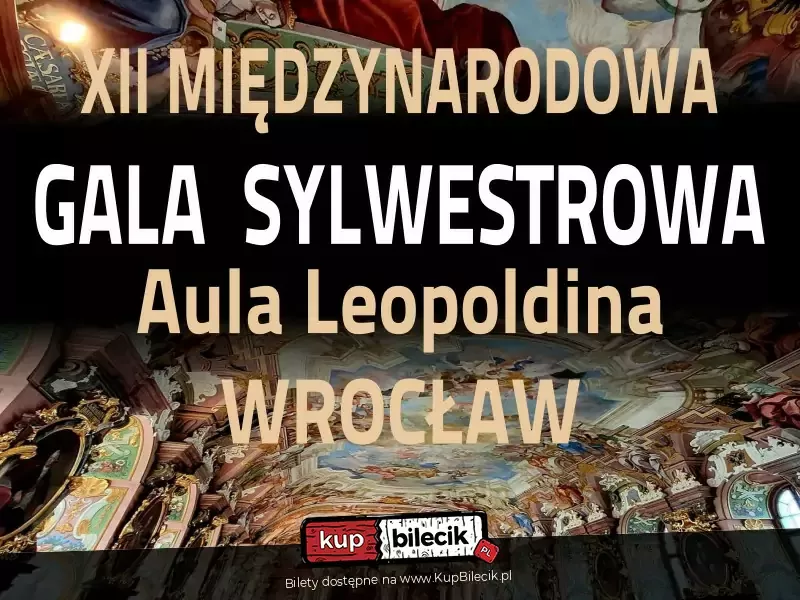 XII Międzynarodowa Gala Sylwestrowa w Auli Leopoldina we Wrocławiu. W programie słynne melodie, muzyka filmowa, arie , duety i chóry z oper oraz znane polki, marsze i walce. Nie zabraknie słynnego chóru "Va, pensiero" z opery "Nabucco" Giuseppe Verdiego, którego wzniosła melodia i poruszający tekst poruszyły serca melomanów na całym świecie. W przerwie koncertu poczęstunek lampką szampana.